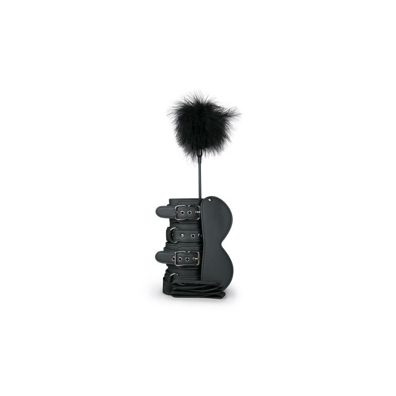 Are you interested in bondage, but you dont know where to start? Then the beginners bondage fantasy kit is the right choice for you! It introduces you to the world of bondage and allows you to use your imagination as this fun set can be used any way you like. The set consists of handcuffs, ankle cuffs, an eye mask and a tickler. The four cuffs have straps attached to them, so you can tie them together or tie them to bedposts, chairs, bondage harnesses etc. The possibilities are endless! The eye mask blocks out light, which heightens the other senses for an exciting bondage experience. Because of the elastic strap is always fits perfectly. Use the tickler to tease your partner and to stimulate the nerve endings. This makes the skin even more senstive and adds an extra dimension to your bondage game.